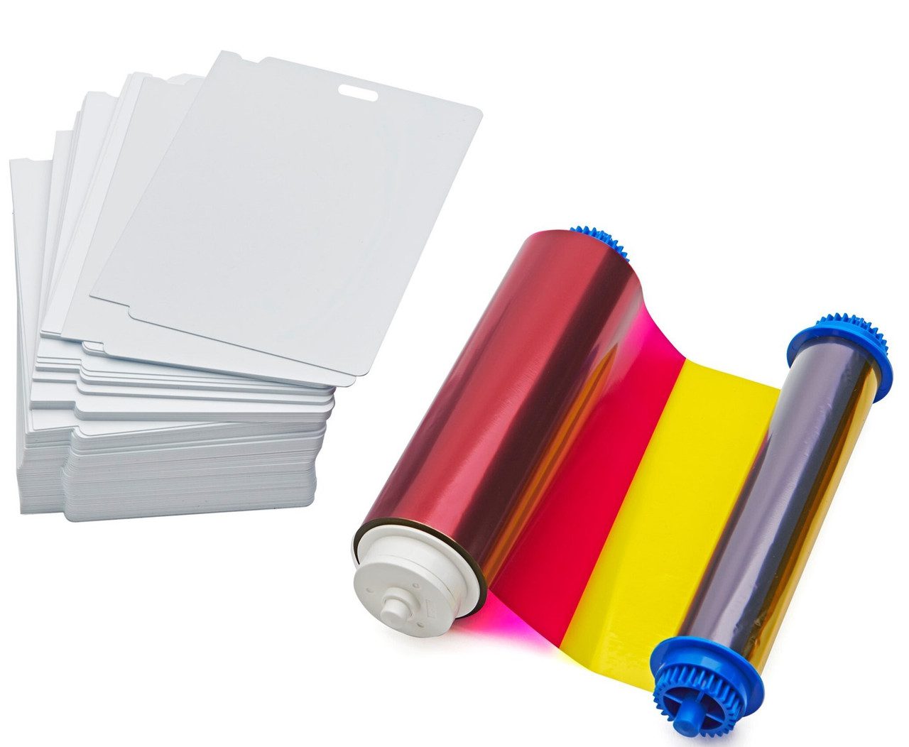 Media kit for ZC10L for superior image quality on 23 mil cards. Single and dual sided full color printing using ZC10L printer. 400 images on a roll of YMCO ribbon, 400 23 mil 2 slot punches.