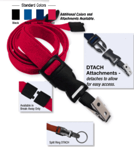 “5/8″ DTACH Lanyard – Keeps Your ID or Keys at Your Fingertips”! 5/8″ OptiWeave polyester soft material with detachable attachments.