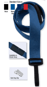 “Ribbed Material Lanyards” 5/8″ micro weave ribbed polyester material with choice of 3 attachments. Also available in non-break-away, call for details.